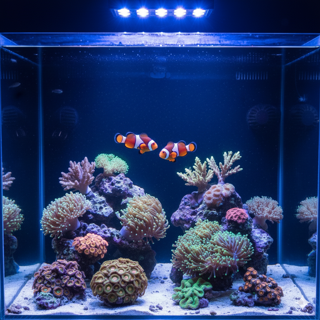 Você vai aprender passo a passo tudo o que envolve um aquário marinho saudável: preparação da água, escolha dos equipamentos, ciclagem, cuidados básicos, manutenção, controle de parâmetros, nutrição, tratamento de peixes, cuidados com corais e até protocolos avançados como quarentena e controle de pragas.